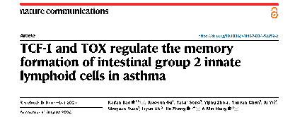 2024年9月8日,国际期刊Nature Communications(中科院综合性期刊1区Top,IF:14.7)在线发表best365药学院洪敏教授、医学院青年教师包凯帆、郑劼副教授团队论文:TCF-1 and TOX Regulate the Memory Formation of Intestinal Group 2 Innate Lymphoid Cells in Asthma。该研究发现了一种具备免疫记忆样功能的2型固有淋巴细胞(memory-like group 2 innate lymphoid cells, ml-ILC2s)的新亚型,ml-ILC2s的“肺肠”间迁移在哮喘反复发作中扮演的关键角色,转录因子TCF-1和TOX与其记忆形成及体内迁移密切相关。