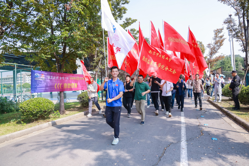 随着胡立宏鸣枪发令,各分工会旗手高举鲜红的旗帜即刻出发,广大教职工热情高涨,精神抖擞,迈着矫健的步伐,同向同行在美丽的校园中,一路奋勇争先、欢声笑语,以蓬勃的朝气、昂扬的斗志大步前进。