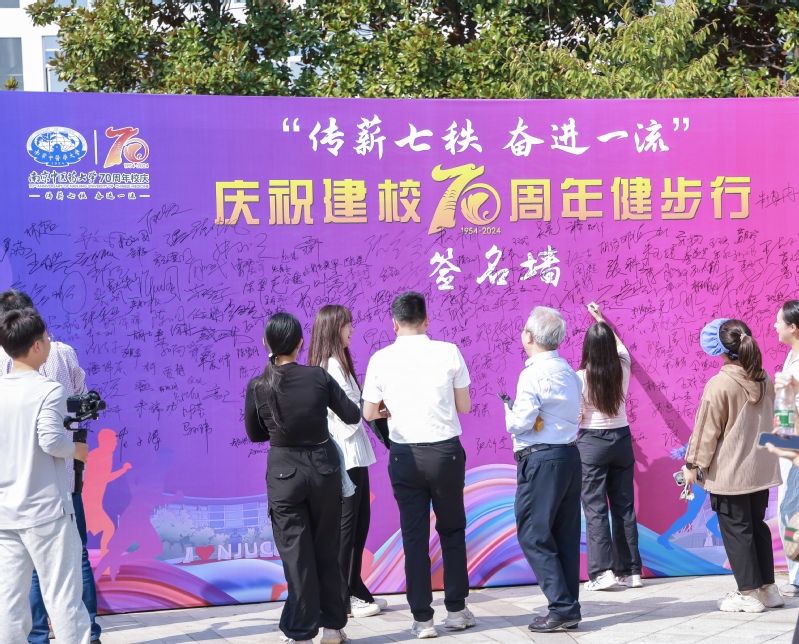 在终点处淡安广场的“传薪七秩 奋进一流”庆祝建校70周年签名墙上,广大教职工们写下自己的姓名,表达着对学校70华诞的深情祝福。