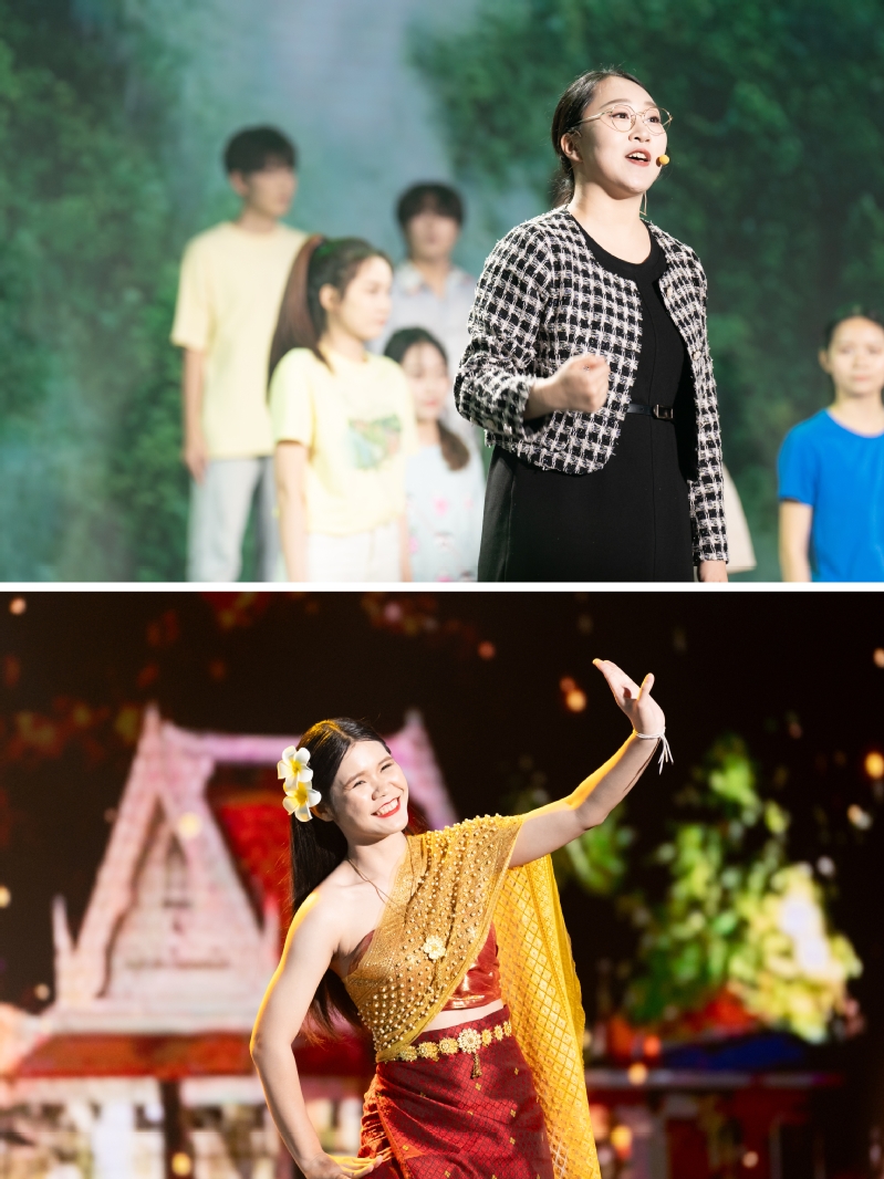 第二篇章“本草·求创新”以退休教职工舞蹈团、合唱团,教工合唱团,大学生合唱团,校十佳歌手代表共同带来的歌曲联唱启幕。《我们的生活充满阳光》《校园的早晨》《光阴的故事》《星辰大海》《我爱你中国》,以优美的旋律和动人的歌声,展现了南中医人的家国情怀。音乐剧《植草耕心》如诗如画,演绎着南中医人的温情与坚守。武术舞蹈《杏林武韵》刚柔并济,似奔腾的骏马,呈现出南中医的豪迈气魄与活力。由泰国留学生带来的舞蹈《泰好看》则以其灵动的舞姿和绚丽的色彩,让观众们感受到了留学生的独特靓丽风采。