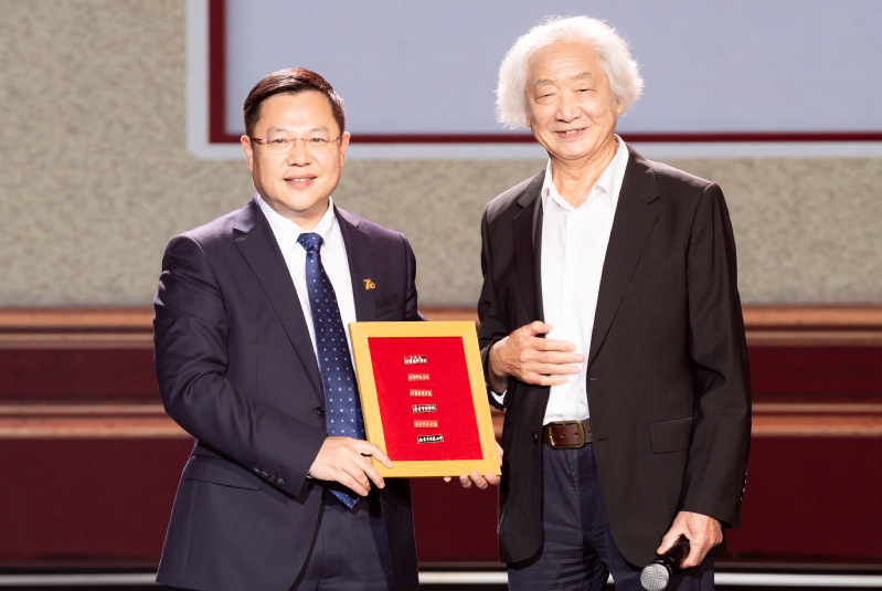 第一篇章“杏林·织芳华”,宛如一幅绚丽多彩的校史画卷徐徐展开。歌舞《你好!南中医》以其激昂的旋律和活力四射的舞姿,瞬间点燃了现场的热烈氛围。创意表演《对话先贤》中,四名学生演员以精湛的演技,带领观众穿越时空,与古代中医名家展开一场心灵对话。情景剧《根·脉》把南中医70年的校史化作潺潺绵延的溪流,展示着学校承载的历史记忆和人文情怀。独唱《写故事的人》以深情的吟唱,诉说着南中医人的奋斗与梦想。原型人物采访环节,郎永淳校友采访建校第一批教职工蔡知新老师,89岁高龄的蔡知新老师深情讲述了学校建校初期的艰苦创业,以及老一辈南中医人矢志办好新中国中医药高等教育所做出的奉献与担当,为当代南中医学子树立起一座不朽的精神丰碑和示范榜样。蔡知新将反映学校70年变迁的整套校徽赠与学校,程海波代表学校接受捐赠。舞蹈《医脉相承》,大学生舞蹈团演员们用青春之姿诠释着医学传承的神圣使命,矢志于在医学的田野中播撒出希望的种子。