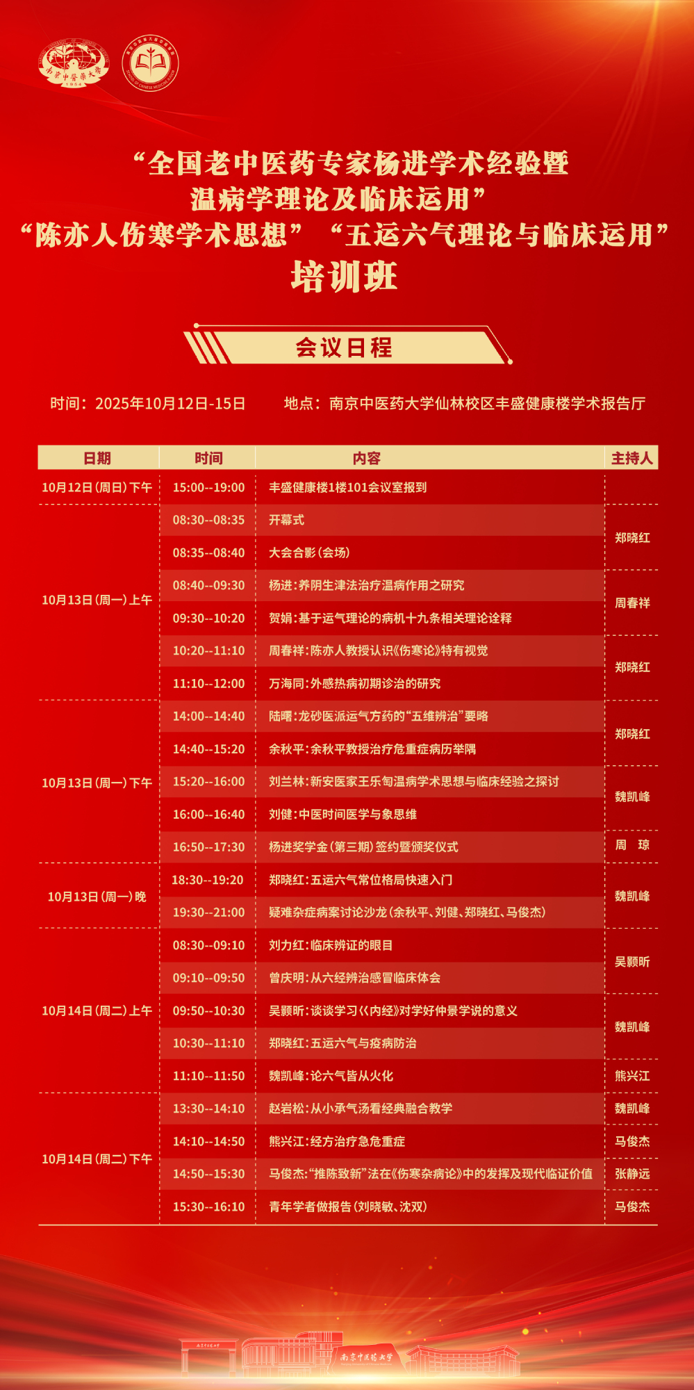 “全国老中医药专家杨进教授学术经验暨温病学理论及临床运用培训班”“陈亦人伤寒学术思想研修班”“五运六气理论与临床运用师资培训班”